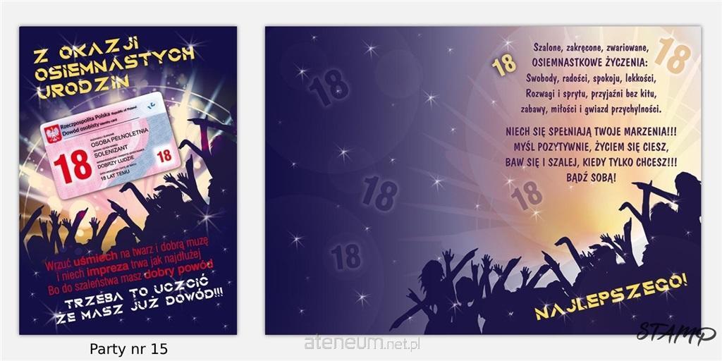 Karnet Party naklejany B6+koperta Urodziny 18 wz18