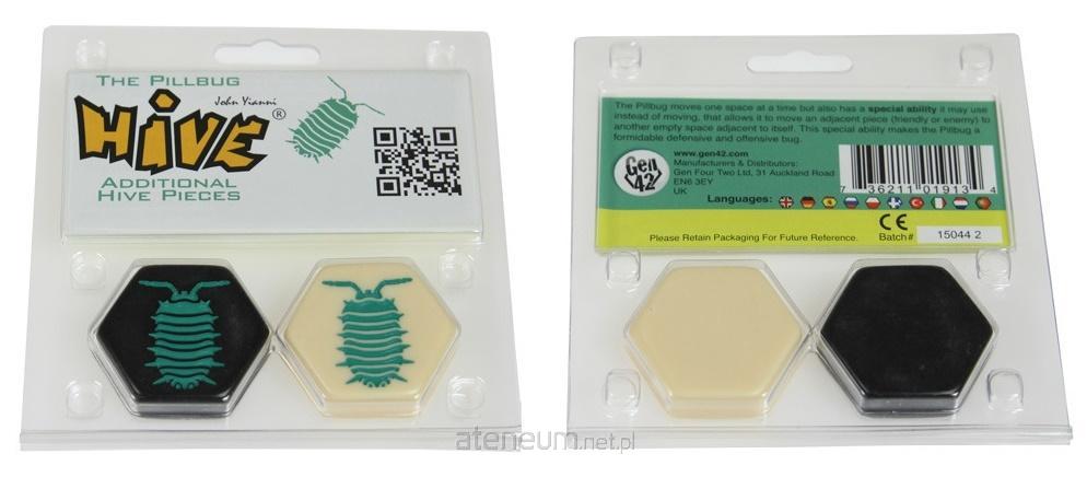 Płytki stonóg mogą być dodawane do standardowego zestawu Roju. Podczas rozgrywki są one wprowadzane do gry w taki sam sposób jak pozostałe owady. Stonoga porusza się o jedno pole. Dodatkowo posiada specjalną zdolność, której może użyć zamiast wykonywać ruch. Zdolność ta pozwala jej poruszyć sąsiednią płytkę (swoją lub przeciwnika) o dwa pola. Najpierw na siebie, a następnie w dół, na inne wolne pole z nią sąsiadujące. Płytka poruszona przez stonogę, nie może być poruszona (bezpośrednio lub za pomocą innej stonogi) w następnej turze przeciwnika. Rój został uznany przez MENSA za najlepszą grę umysłową 2006 roku! Inne rekomendacje są zbędne! Zawartość: 2 bakelitowe płytki instrukcja Liczba graczy: 2 Wiek graczy: od 9 lat Czas gry: 10 - 30 min.
