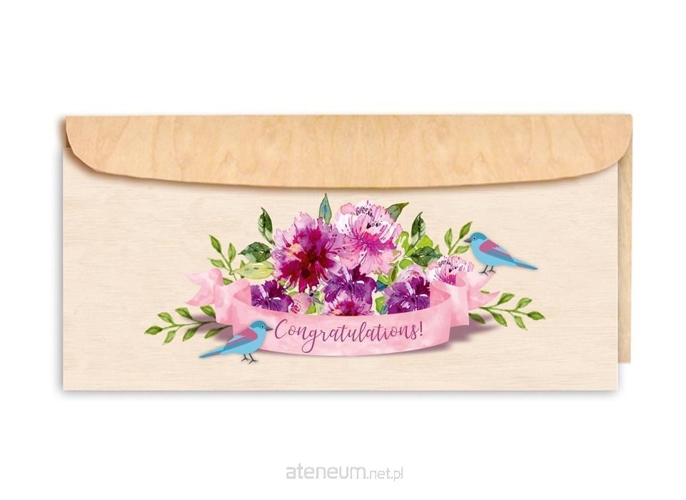 Karnet drewniany C6 + koperta Tort truskawkowy