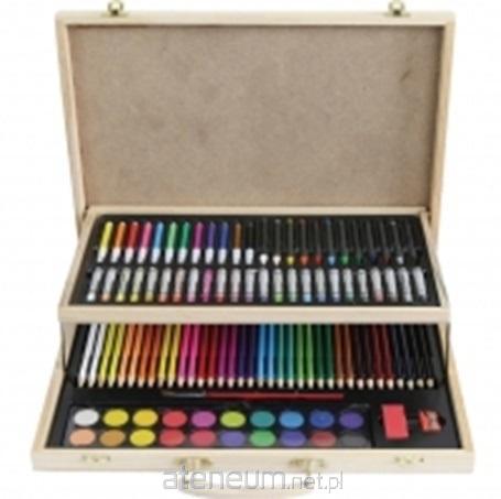 Zestaw artystycznyto doskonały początek przygody młodego artysty. Komplet jest funkcjonalny i składa się łącznie z108 praktycznych elementów.Mnogość przyborów sprawi, że każde użyciezestawu artystycznego będzie doskonałą podróżą w świat sztuki.W skład zestawu wchodzą 24 pastele olejne, 12 mini flamastry, 12 kredek świecowych, 20 kolorów farbek akwarelowych, 36 kredek, pędzelek, gumka, temperówki, paletka. Wykonane z najwyższej jakości materiałów przybory mają szeroką gamę kolorystyczną, co dodatkowo ułatwi wykonywanie prac plastycznych czy codzienny użytek. Całość została umieszczona w eleganckiej i praktycznej walizce, ułatwiającej przenoszenie i dodatkowo podbijającej walory estetyczne całego zestawu. Zestaw do malowania i rysowania to nie tylko obowiązkowy element wyposażenia każdego ucznia czy miłośnika kreatywnych zadań, ale także doskonały pomysł na prezent.