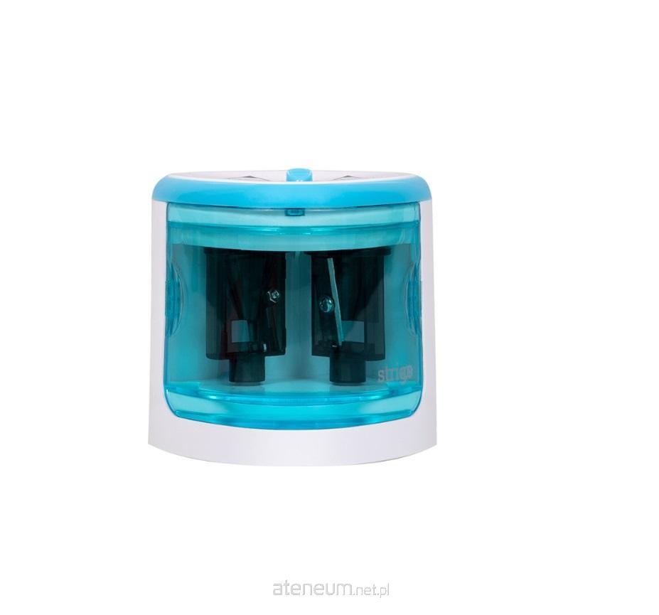 Elektryczna temperówka w kolorze niebieskim z dwoma otworami różnej grubości.