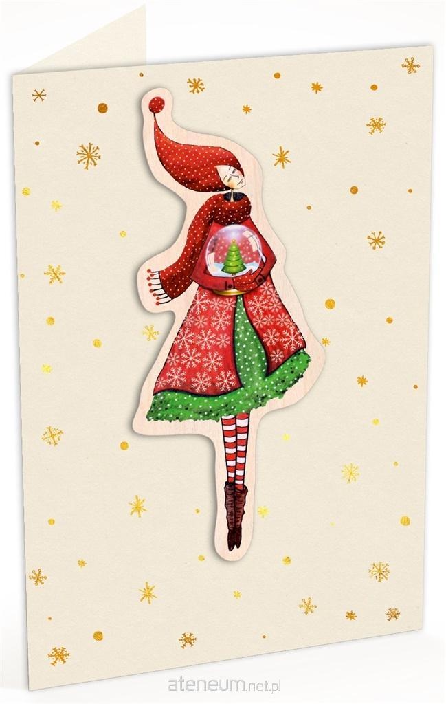Karnet drewniany C6 + koperta Święta Kobieta Sanki