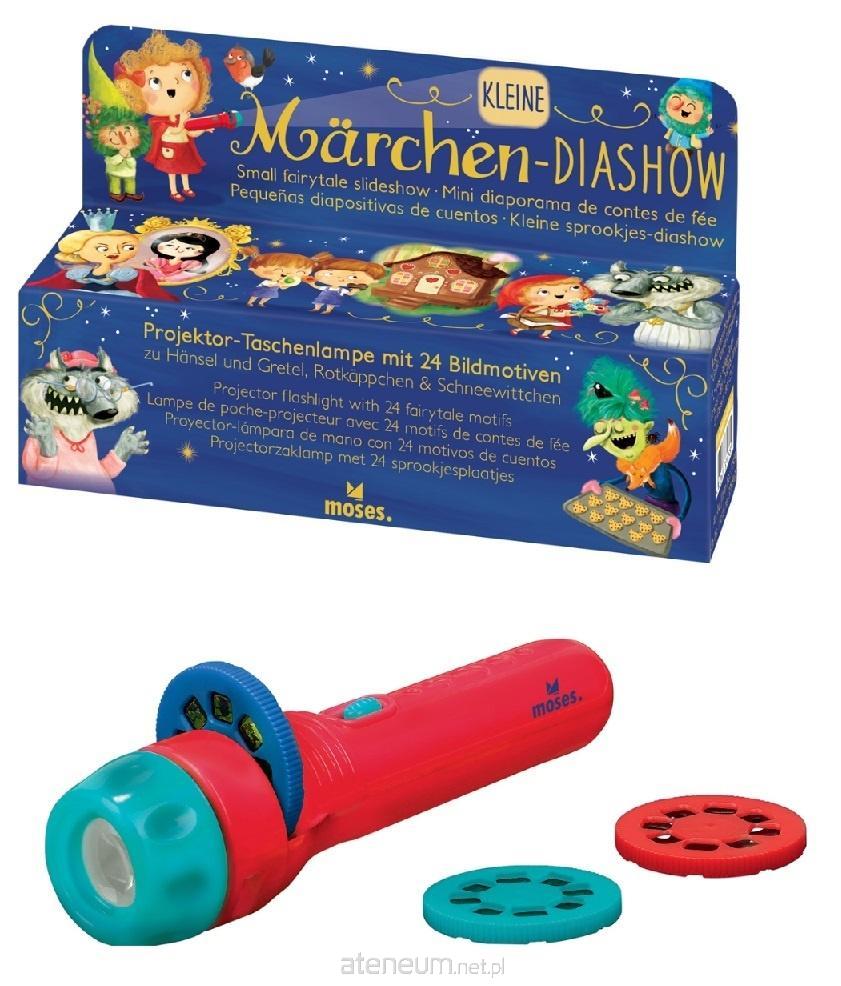 Latarka, Mini Projektor, Bajki. Wspaniały pokaz bajek przed snem, który możesz przenieść do pokoju dziecka za pomocą latarki - projektora. W tym celu należy włączyć latarkę, wsunąć kółeczko z przeźroczami w szczelinę powstałą po odciągnięciu ruchomej części i skierować na ścianę w zaciemnionym pokoju. Niezwykły pokaz. Wyświetla 24 obrazy, po 8 barwnych zdjęć (3 kółeczka z przeźroczami). Zawiera trzy bajki, tj. Czerwony Kapturek, Jaś i Małgosia, Królewna Śnieżka. Idealna widoczność. Przeznaczony dla dzieci powyżej lat 3. Nigdy nie świecić bezpośrednio w oczy.