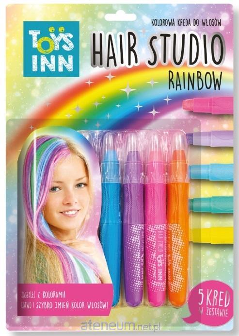 Hair studio Rainbow - to kolorowa kreda do włosów. Zaszalej z kolorami! Łatwo i szybko zmień kolor włosów. Zestaw zawiera pięć kred w kolorach: zielony, niebieski, fioletowy, różowy i pomarańczowy. W celu usunięcia kolorów z włosów wystarczy umyć je szamponem.
