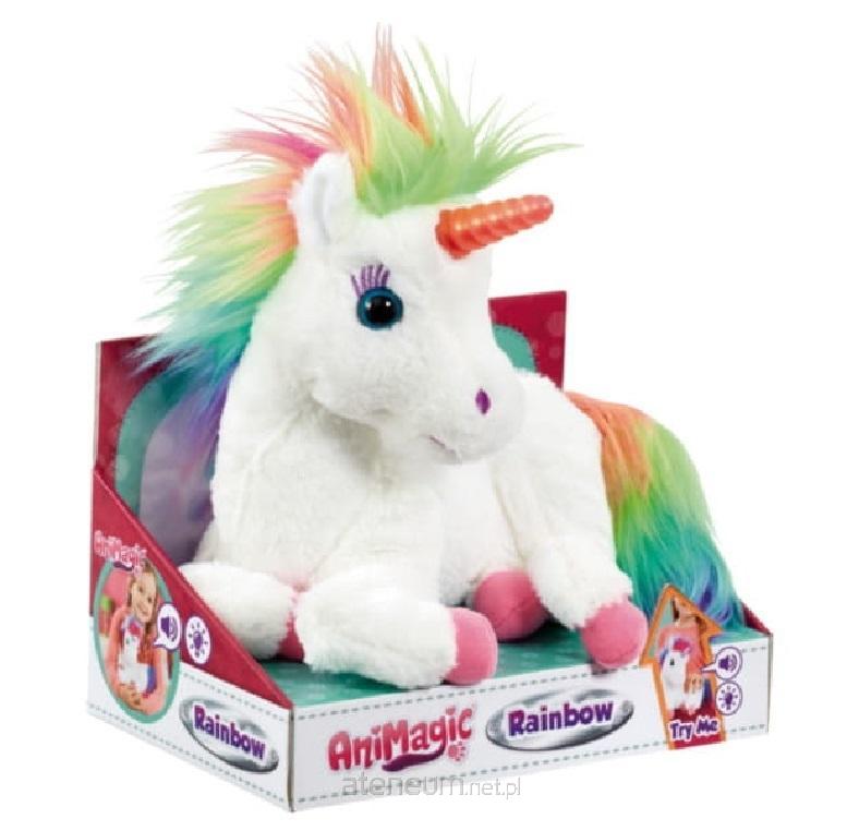 Pogłaskaj go po grzbiecie a jego róg będzie swiecił kilkoma kolorami a jednorożec zacznie wydawać różne dźwięki