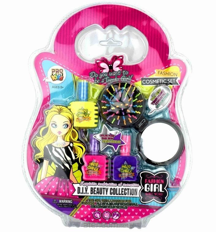 Zestaw kosmetyczny dla dziewczynki. Z tym zestawem możemy zmienić kolor włosów dzięki specjalnej kredzie do kolorowania włosów. Kreda jest bezpieczna z naturalnych składników. Aby zmyć kolor z włosów należy umyć głowę zwykłym szamponem.