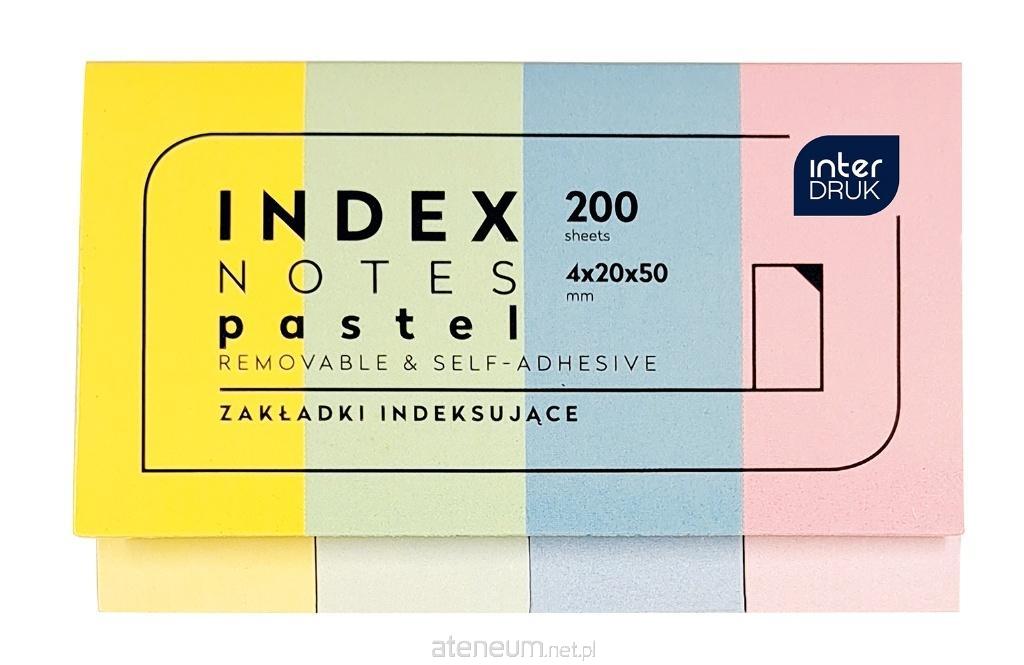 Zakładki indeksujące wielokrotnego użytku w 4 pastelowych kolorach. Nie pozostawiają śladu po odklejeniu. Format zakładki: 20x50 mm. 200 szt.