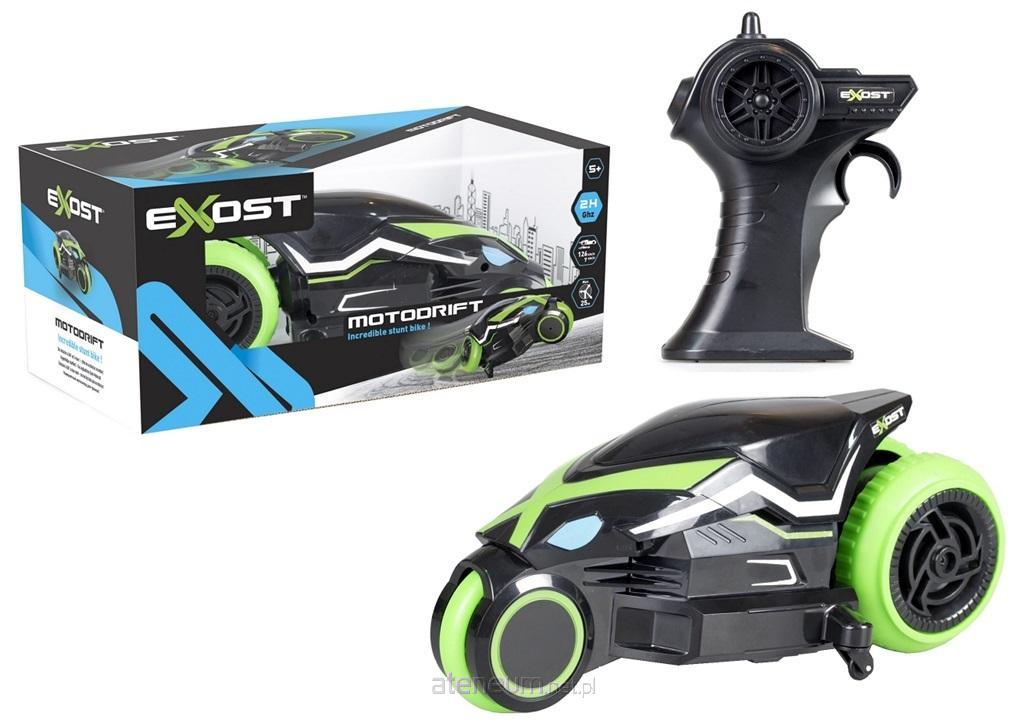 Nowoczesny motocykl sterowany za pomocą pilota. Pojazd posiada potężne tylne koła, które obracają się na płasko, dzięki czemu potrafi on kręcić się dookoła własnej osi w zawrotnym tempie! Zabawką steruje się za pomocą pilota dołączonego do zestawu.