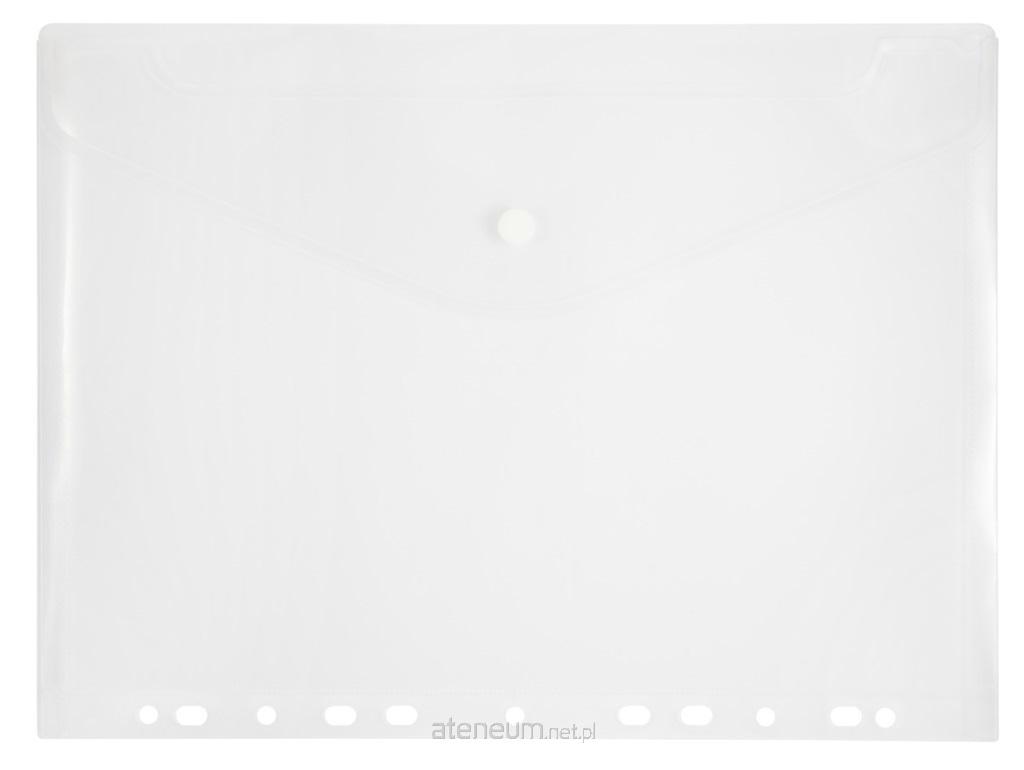 Koperta wykonana z kolorowego, transparentnego polipropylenu o grubości 0.18 mm. Zapinana na zatrzask. Europrofaracja umożliwia wpięcie teczki do segregatora, orientacja pozioma, wymiary 31,2x23,5 cm.