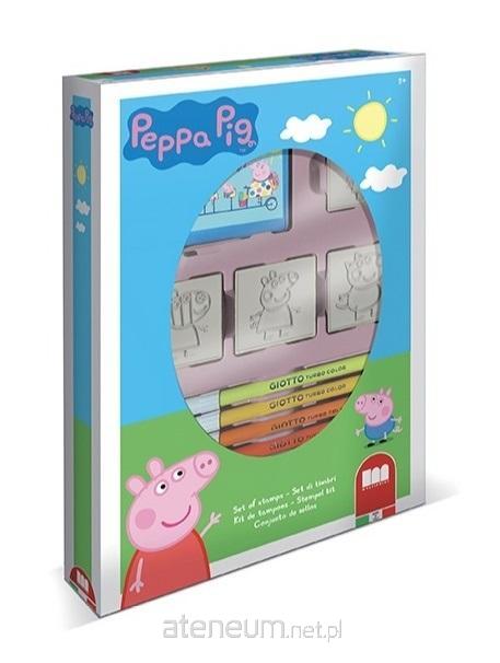 Pieczątki na licencji Świnka Peppa. W skład zestawu wchodzą: 4 pieczątki, 1 poduszeczka do tuszu i 7 pisaków.