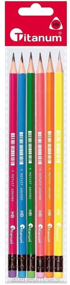 Wysokiej jakości ołówek drewniany z gumką twardość HB obudowa trójkątnaobudowa w kolorach neonowych pakowane 6 szt w woreczku z zawieszką mix 6 kolorów