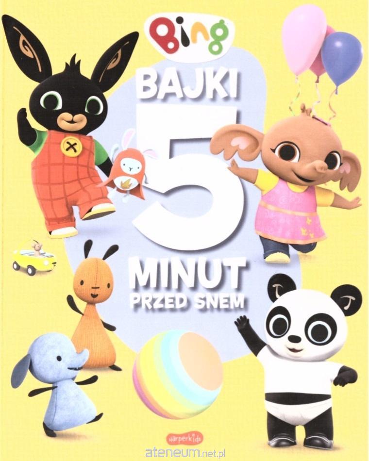 Co tym razem spotka królika Binga, Sulę i ich przyjaciół? Krótkie opowiastki idealnie sprawdzą się w roli bajek na dobranoc dla najmłodszych! Bing. Bajki 5 minut przed snem to doskonała propozycja przeznaczona dla przedszkolaków. W książeczce maluchy znajdą 11 opowieści napisanych prostym językiem (9 nowych, wcześniej niepublikowanych, oraz dwa najbardziej lubiane Prezent urodzinowy i Gdzie jest Króliś Tuliś?), dostosowanym do wieku najmłodszych. Krótkie, bogato ilustrowane teksty zachęcą dzieci do samodzielnego czytania, a duża czcionka nie sprawi trudności nawet początkującym czytelnikom. W książeczce Bing. Bajki 5 minut przed snem dziecko znajdzie: niepublikowane wcześniej, króciutkie historyjki, których przeczytanie zajmuje jedynie 5 minut; przygody swoich ulubionych bohaterów, znanych dzieciom z animowanej bajki emitowanej na kanale MiniMini+; prosty, zrozumiały dla najmłodszych język; kolorowe ilustracje z animacji; świetny materiał na pierwszą przygodę z czytaniem! Bajki 5 minut przed snem to seria książeczek do nauki czytania dla najmłodszych dzieci. Proste, krótkie teksty będą doskonałą okazją do prób samodzielnego czytania, lecz sprawdzą się także jako lektura czytana dziecku na dobranoc przez rodzica. Sympatyczni bohaterowie, wciągające przygody i kolorowe obrazki wprawią najmłodszych w miły nastrój i pozytywnie nastroją przed snem.