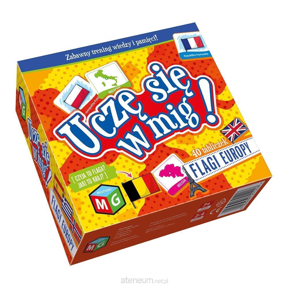 Uczę się w mig. Flagi Europy to wspaniała gra, która rozwinie pamięć i spostrzegawczość Twojego dziecka. Dodatkowo poszerzy jego wiedzę z zakresu geografii i pomoże obudzić w nim naturę prawdziwego podróżnika zapewniając przy tym dużo dobrej zabawy i emocji. W grze wygrywa ten, kto najlepiej zapamięta położenie par państw i ich flag, odkrytych na chwilę, spośród wszystkich ilustrowanych tabliczek leżących na stole rewersem do góry.