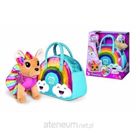 Chi Chi Love Tęczowa moda to uroczy piesek - przytulaczek z supermodnymi dodatkami. Wykonany został z delikatnego, bardzo miłego w dotyku pluszu. W zestawie z uroczym Chihuahua znajduje się specjalna torebka, w której piesek będzie fantastycznie czuł się podczas spacerów. Torebka jest lakierowana w kolorach tęczy. Na szczególną uwagę zasługuje jednak niezwykła kreacja Chihuahua - śliczna sukienka z połyskującą różową górą i kolorowym dołem oraz kokarda przy uchu, która idealnie pasuje do reszty stroju. Taki piesek to prawdziwy przyjaciel dziewczynki i nieodzowny towarzysz!