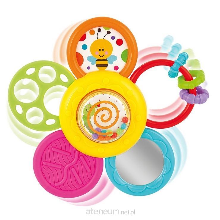 Pięciokolorowe płatki stokrotki, każdy z inną funkcją. Ma bezpieczne lusterko, miękkie części do gryzienia, piszczek oraz przyssawkę. Obraca się. 2 w 1 grzechotka i zabawka z przyssawką Ta zabawka ma wiele elementów: grzechotkę, gryzak, bezpieczne lusterko oraz piszczałkę. Przymocuj grzechotkę do gładkiej powierzchni. Dziecko może obracać stokrotkę, ćwicząc małe paluszki. Poznaj kształty, dźwięki i kolory Podczas zabawy dziecko poznaje i uczy się rozróżniać różne kształty, dźwięki i kolory. Ukojenie dla dziąseł i stymulacja rozwoju Miękkie gryzaki ukoją dziąsła dziecka.Kolorowe, ruszające się elementy aktywizują dziecko i wspierają rozwój percepcji oraz małej motoryki.