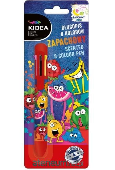 Długopis zapachowy z wkładami w ośmiu intensywnych kolorach: czarnym, niebieskim, zielonym, pomarańczowym, czerwonym, fioletowym. Jego dodatkowym atutem są słodkie, przyjemne zapachy każdego z kolorów, które uatrakcyjniają produkt i sprawiają, że dzieci chętniej po niego sięgają. Jego precyzyjna końcówka ułatwia pisanie oraz dokładne wyróżnienie odpowiednich fragmentów tekstu. Funkcja 8 w 1 sprawia, że jest on niezbędny w piórniku każdego dziecka.