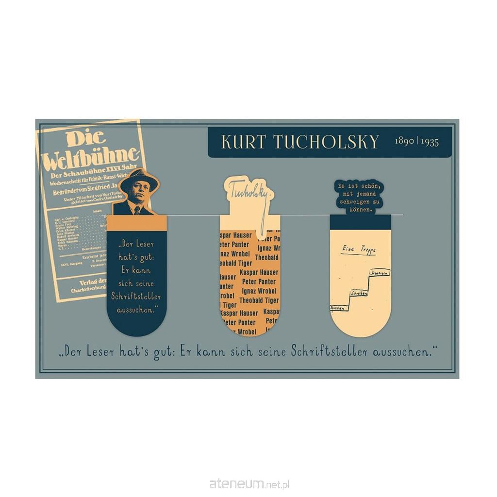 Zakładki magnetyczne - Kurt Tucholsky Nie tylko zaznaczają strony, ale także wyglądają z książki na górze i dlatego przyciągają wzrok. Szczególnie odpowiednie dla miłośników sztuki i literatury. Trzy zakładki magnetyczne w zestawie są tematycznie skoordynowane. Każdy zestaw dotyczy znanego pisarza z minionej epoki i zawiera cytaty, odpowiednie ilustracje do słynnych dzieł lub podpis autora. Skomponuj własną kolekcję z zakładkami Goethe, Schiller lub Oskar Wilde. Wymiary: 5,5 cm x 2 cm x 0,1 cm.