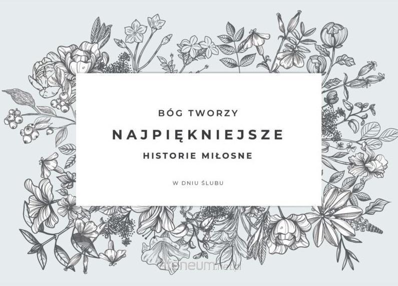 Kartka składana z kopertą.Kartka zawiera tekst:Bóg tworzy najpiękniejsze historie miłosneW kartce możesz wpisać dowolny tekst lub życzenia na dowolną okazję.