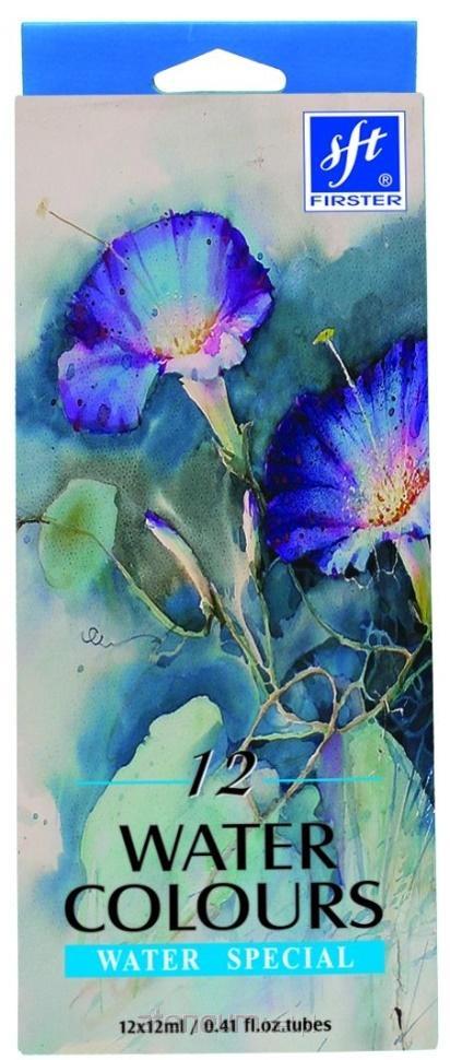 Farby akwarelowe na bazie wody, w tubkach o pojemności 12 ml. Wysoka jakość barwników, żywe i lśniące kolory. Kryją wydajnie i są odporne na blaknięcie. Zalecane dla plastyków. Spełniają normy bezpieczeństwa i higieny EN71 i ASTM D-4236. Zestaw zawiera 12 kolorów farb po 12 ml.