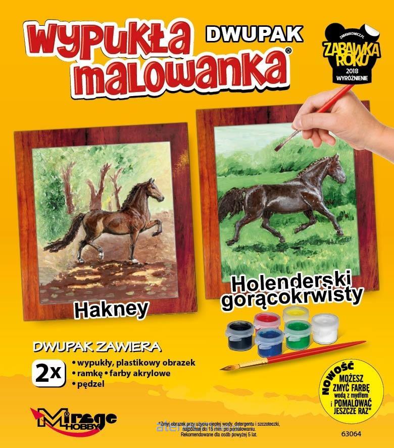 Zestaw zawiera 2x wypukły, plastikowy, kształtny obrazek 3D, 2x farbki akrylowe, 2x pędzelek oraz 2x ramkę z kartonu do postawienia lub powieszenia. Zmyj obrazek przy użyciu ciepłej wody, mydła i szczoteczki, najpóźniej do 15 min. po pomalowaniu. Obrazek ma odpowiedni do wzoru wypukły kształt 3D, który jest dobrze odczuwalny w dotyku. Produkt jest wymyślony i wyprodukowany w Polsce! Wszelkie prawa zastrzeżone. Każda Wypukła Malowanka to konkretny wzór z danej serii. Kolekcja jest podzielona na różne serie np. Koty, Psy, Konie, Futrzaki, Dinozaury, Jednorożce, Kwiaty, Sport, Bajki, Zoo, Las, Taniec i inne. Seria Wypukła Malowanka Zestaw Kreatywny została nagrodzona Wyróżnieniem Zabawka Roku 2018.