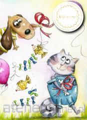 Karnet w formacie B6, uszlachetniony lakierem holograficznym. W zestawie z kolorową kopertą.