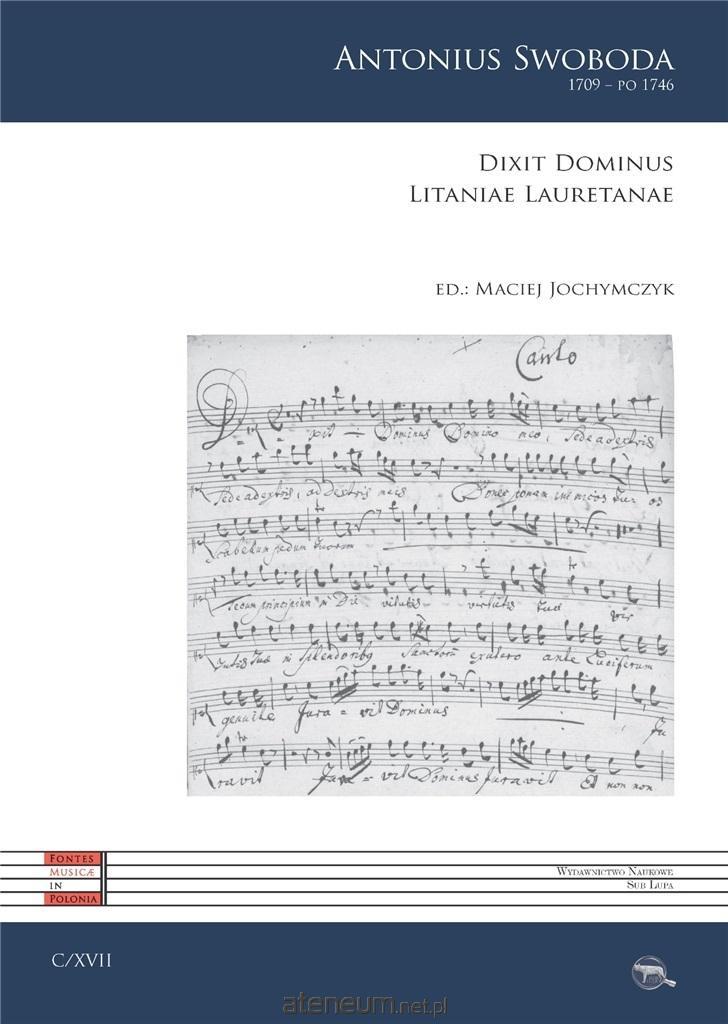 Antonius Swoboda (1709 - po 1746) wstąpił do zakonu jezuitów w Jnie. Przez następne lata działał w Ołomuńcu, Tely, Pradze, Wrocławiu i Kłodzku, gdzie m.in. opiekował się zespołami muzycznymi tamtejszych konwiktów. W roku 1746 został wydalony ze zgromadzenia, po czym prawdopodobnie działał jako muzyk w jednej z licznych kapel regionu. Kompozycje publikowane w niniejszym zeszycie "Dixit Dominus i Litania" pochodzą ze zbioru muzykaliów kościoła farnego pw. św. Jadwigi Śląskiej w Grodzisku Wielkopolskim i przechowywane są w Archiwum Archidiecezjalnym w Poznaniu. To stosunkowo zwięzłe opracowania, reprezentatywne dla katolickiej muzyki religijnej powstającej wówczas w kręgu kapel kościelnych i klasztornych Europy Środkowej. Obydwie zostały przeznaczone na podobną, bardzo popularną wówczas obsadę: czterogłosowy zespół wokalny, dwoje skrzypiec oraz organy realizujące basso continuo, w przypadku poszerzoną dodatkowo o parę trąbek clarini.