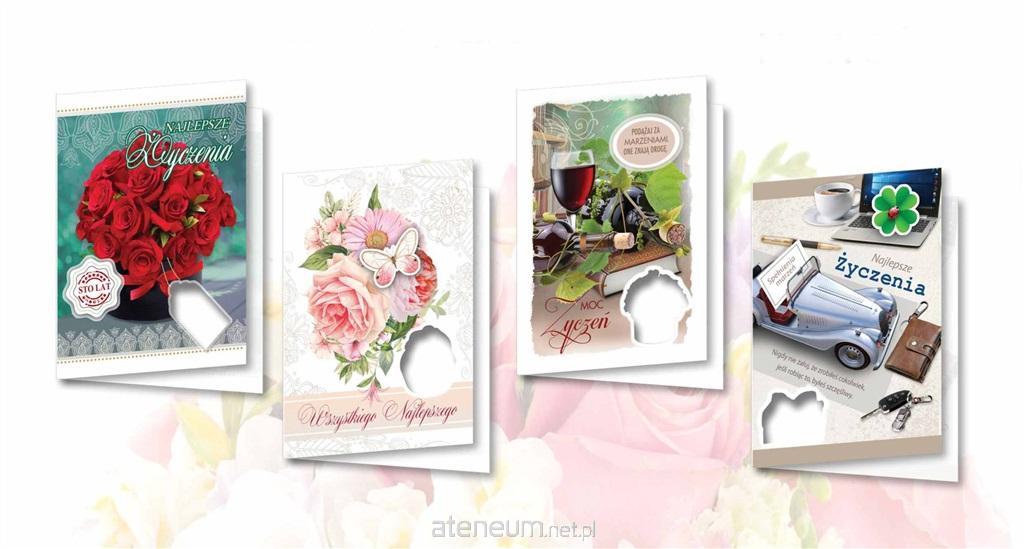 Opakowanie zbiorcze 10 szt. Mix wzorów.Stylowe karnety z życzeniamibez podania kontkretnej okazji i kopertą w różnychkolorach.
