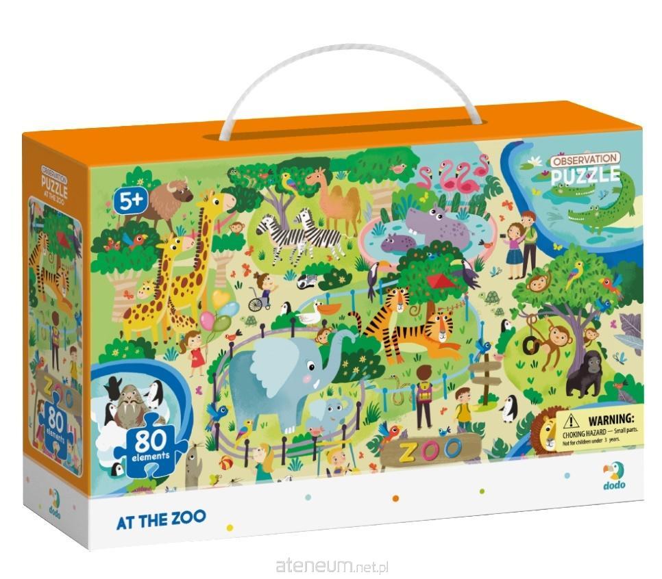 Jedne puzzle - wiele historii Puzzle DODO powstały specjalnie z myślą o najmłodszych. Mogą cieszyć się nimi zarówno kilkulatki, jak i kilkunastomiesięczne maluchy. Bogactwo wzorów i kolorów wprawia w zachwyt. Znajdziemy wśród nich motywy takie jak: zwierzęta, pory roku, droga mleczna itp., przygotowane w formie kolorowych ilustracji. Zestawy różnią się liczbą elementów oraz ich wielkością, co daje możliwość szerokiego wyboru zgodnie z wiekiem dziecka. Puzzle obserwacyjne rozwijają spostrzegawczość, cierpliwość, koncentrację i pamięć u dzieci. W ramce puzzli znajdują się pojedyncze elementy, które należy odszukać na obrazku. Wiek, 5+, 80 elementów. Wymiar obrazka po ułożeniu: 45x37 cm.