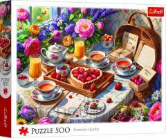 Puzzle firmy Trefl składające się z 500 elementów. Po ułożeniu powstanie obrazek o wymiarach 48x34 cm. Produkt został wykonany z wysokiej jakości materiałów, z zastosowaniem specjalnego kalandrowanego papieru odbijającego światło, co ułatwia układanie. Produkt został wyprodukowany w Polsce, a do produkcji zostały użyte materiały ekologiczne.