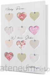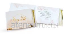 Księga gości Happy Book HBK-003 (kwadratowa). Dzień ślubu pozostaje na zawsze w pamięci Młodej Pary. Ten dzień pełen szczególnych emocji wymaga wyjątkowej oprawy. Aby upamiętnić ten jedyny w swoim rodzaju moment życia Kukartka stworzyła piękne Księgi gości. Happy Book to album, który pozwoli zachować wspomnienia z tego najważniejszego dnia. Wpisy gości, zapiski, wspomnienia i złote myśli przetrwają przez całe życie. Dołożyliśmy wszelkich starań, aby nasz produkt był trwały, elegancki i najwyższej jakości (jak to zwykle w Kukartce). 40 białych kart na wpisy poprzedzonych jest stroną tytułową oraz miejscem na zdjęcie. Ekskluzywna okładka zdobiona jest złotą lub srebrną folią (hot Stamp). Dla ułatwienia (i lepszego efektu) dołączamy elegancki długopis doskonale uzupełniający całość. Wymiar 265mm x 230mm. Całość jest zapakowana w eleganckie i trwałe pudełeczko. To produkt z najwyższej półki godny tego wyjątkowego dnia.