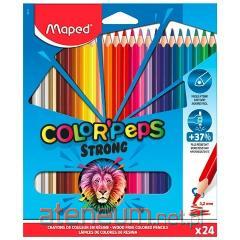 Kredki Color'Peps wykonane z drewna lipowego. Trójkątny, ergonomiczny przekrój. Intensywne kolory. Łatwe do temperowania. Grafit o przekroju 2,9 mm, odporny na kruszenia i łamanie. Wyprodukowane zgodnie z wszystkimi regulacjami dotyczącymi produktów dla dzieci. 72 różne kolory pakowane w kartonowe etui. Dekorowane opakowanie zbiorcze na 12 etui może służyć jako ekspozytor. J.S.: 1 etui.