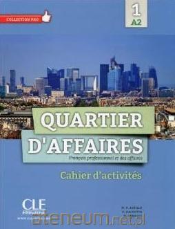 Zeszyt ćwiczeń do nauki biznesowego języka francuskiego na poziomie A2 dla starszej młodzieży i dorosłych. Książki z kolekcji Quartier d'affaires umożliwiają osiąganie celów zawodowych i sprawne poruszanie się w francuskojęzycznym świecie pracy. Proponowana metoda nauki skupia się na działaniu oraz komunikacji i odnosi się do aspektów kultury frankofońskiej w globalny, wolny od stereotypów sposób. Quartier d'affaires 1 odpowiada poziomowi A2 Europejskiego Systemu Opisu Kształcenia Językowego. Pomaga zbliżyć się do poziomu B1 oraz zdobyć wystarczające umiejętności, by podejść do egzaminów praktycznych DELF Pro A2 lub DFP A2 Paryskiej Izby Handlowo-Przemysłowej.