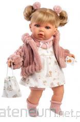 W naszej manufakturze wierzymy, że zabawa jest najlepszą nauką. Dlatego też z wielką miłością tworzymy kultowe lalki Llorens, w 100% ręcznie wykonane, o niepowtarzalnych wzorach. Stosowane przez nas tkaniny pochodzą od renomowanych marek odzieży dziecięcej. Wszystkie lalki Llorens są zgodne z europejskimi przepisami dotyczącymi bezpieczeństwa dzieci, co gwarantuje, że Twoje dzieci będą się bawić w możliwie najbezpieczniejszy sposób. Lalka płacząca Cuquita mierzy 30 cm. Jej rączki, nóżki oraz głowa są wykonane z miękkiego w dotyku winylu, zaś brzuszek jest materiałowy. Po naciśnięciu brzuszka lalka zacznie płakać i wołać ?mama? ?papa?. Cuquita ma śliczną, delikatną buzię i duże, niebieskie oczęta. Lalka jest ubrana w pajacyk ze słodkim nadrukiem lwa oraz różową czapeczkę. Lalka została zapakowana w ozdobny karton, więc bez zbędnych dodatkowych opakowań, może być wręczona jako prezent. Kochamy hiszpańskie lalki Llorens!