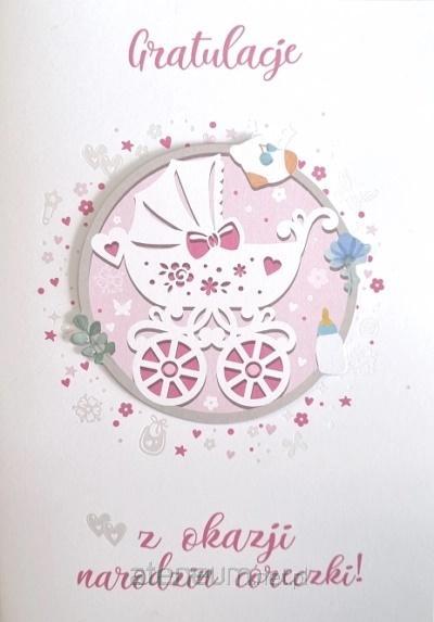 Karnet Przestrzenny B6 Narodziny dziewczynka wózek