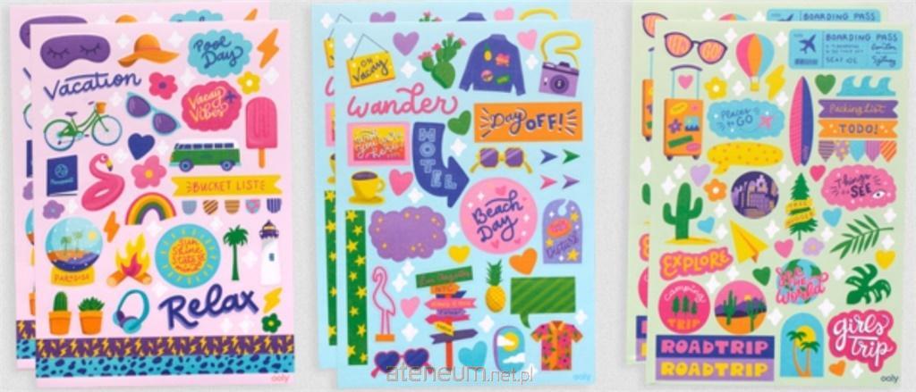 Ponad 200 naklejek o tematyce kolorowych podróży! Zestaw zawiera: 1 arkusz miękkich, piankowych naklejek, 1 arkusz naklejek winylowych, 6 arkuszy naklejek papierowych i praktyczną kopertę do ich przechowywania. Idealny do dekorowania dzienników, pamiętników, plannerów podróży, a także nudnych walizek! Rozpocznij uśmiechniętą, naklejkową zabawę!