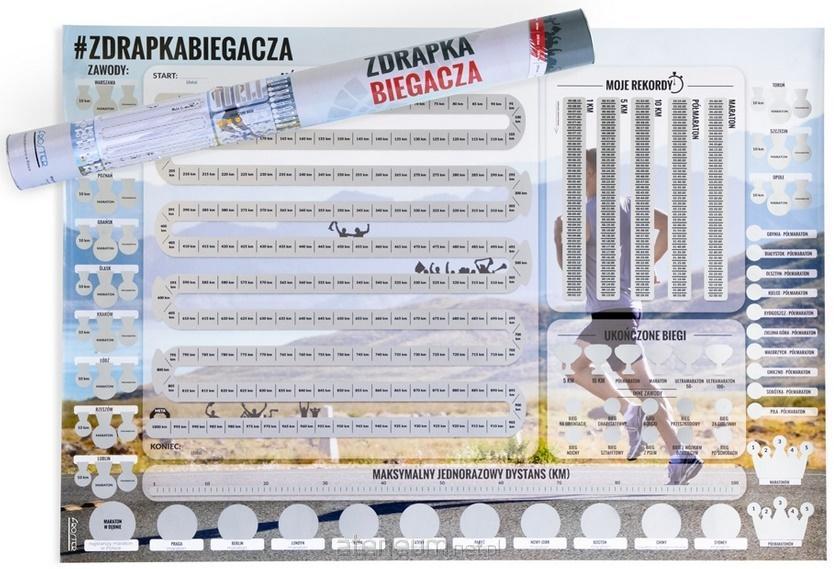 Ten gadżet został zaprojektowany z myślą o wszystkich pasjonatach biegania, nawet tych którzy preferują nietypowe biegi. Równie dobrze sprawdzi się jako prezent dla kogoś, kto dopiero zaczyna biegową przygodę, jak i dla doświadczonego maratończyka, a nawet ultramaratończyka. To bez znaczenia, czy ktoś pokonuje dystans 5 czy 50 kilometrów tygodniowo - zawsze będzie co zdrapać. Każda sekcja na plakacie to inna inspiracja lub wyzwanie dla biegacza, m.in.: całkowity dystans; rekordowy czas na 1, 5 i 10 km, życiówka w półmaratonie i maratonie; zawody biegowe w całej Polsce; nietypowe biegi. Sprawdzi się doskonale jako prezent dla taty biegacza, biegającej mamy, syna czy córki.