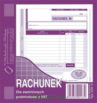 Rachunek dla zwolnionych podmiotowo z VAT 234-5