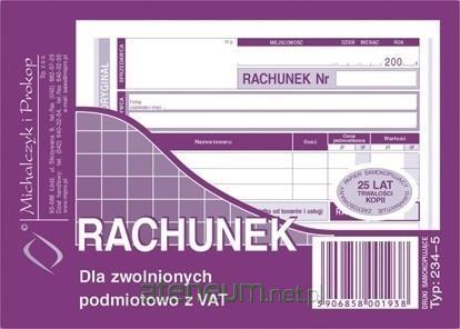 Rachunek dla zwolnionych podmiotowo z VAT 234-5