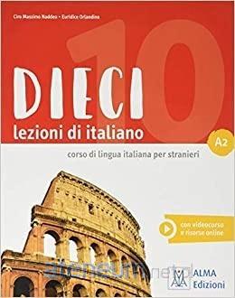 Dieci to kurs języka włoskiego dla obcokrajowców podzielony na 4 poziomy (A1, A2, B1, B2). Składa się z 10 rozdziałów podzielonych na dwustronicowe lekcje. Podręcznik Dieci A1 zawiera: 10-odcinkowy kurs wideo, gramatykę, ilustrowany słownik, ćwiczenia, komiksy VIVERE E PENSARE ALL'ITALIANA, teksty rozwijające umiejętność wypowiadania się, interesujące odsłuchy. Dieci A1 jest skierowany do początkujących uczniów i korzysta z zasobów internetowych strony AREA WEB, gdzie można znaleźć: kurs audio i wideo wideogramatykę, interaktywne ćwiczenia z autokorektą, darmowy przewodnik dla nauczyciela w formacie pdf, zadania dodatkowe, testy i gry.