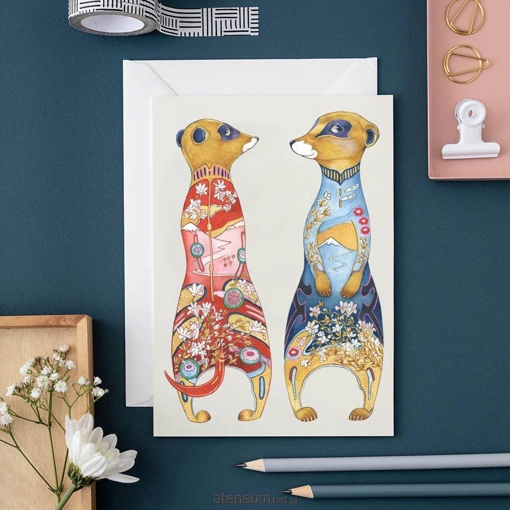 Karnet złocony kwadrat CL3814_BL Jeż z balonami