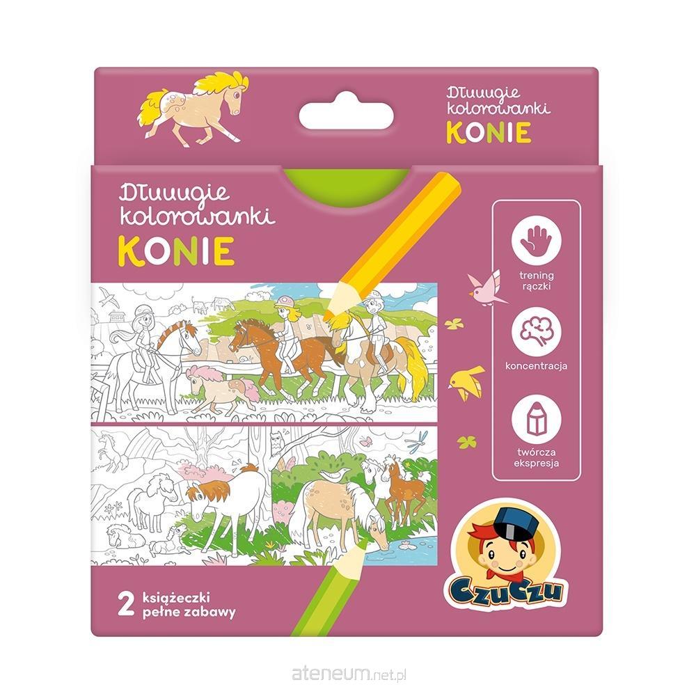 Kolorujcie, główkujcie i bawcie się z rozbrykanymi mieszkańcami naszej kolorowej stadniny. Zestaw zawiera 2 długie książeczki harmonijki pełne kreatywnych zabaw. To prawdziwa gratka dla wszystkich, którzy lubią konie i życie w siodle! Z jednej strony każdej książeczki znajduje się długa kolorowanka, a z drugiej twórcze zadania, dostosowanych do wieku przedszkolaków. Kolorowanki i łamigłówki inspirują do wesołych i rozwijających zabaw. Wyjątkowa cecha: kreatywny zestaw pozwala na zabawy na wiele sposobów i rośnie razem z dziećmi. Bawcie się i doskonalcie różne umiejętności.