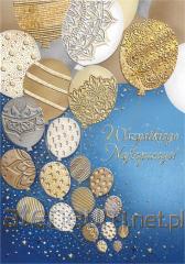 Karnet w formacie 15 x 15 cm. Wydrukowany na wysokiej jakości papierze. Karnet z tłoczonymi wzorami na całej powierzchni oraz srebrzeniem. W zestawie kolorowa koperta.