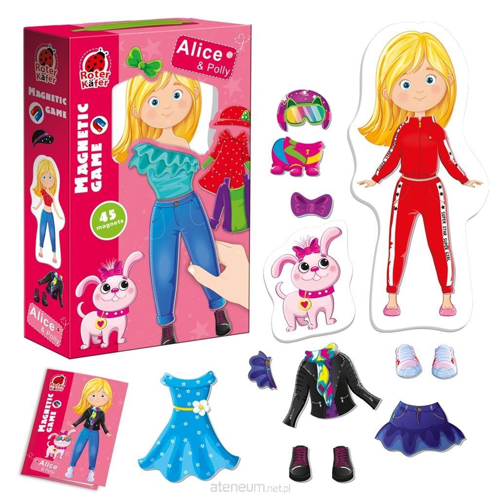 Znacie Alice? To prawdziwa modnisia. Alice posiada bardzo dużo różnych ubrań. Podpowiedzcie jej, w jaki sposób prawidłowo dobierać elementy garderoby. W zestawie są 2 lalki - Alice i jej piesek Polly, a także różnorodne magnesowe ubrania i akcesoria dla tworzenia oryginalnych obrazów. Przebierajcie koleżanki, łączcie elementy garderoby. W książeczce- instrukcji znajdziecie wskazówki, jak można dobierać ubrania. Rozwijamy w procesie gry koncentrację, twórcze zdolności, estetyczny smak. Zestaw: 2 lalki, 45 magnesów, książeczka- instrukcja.