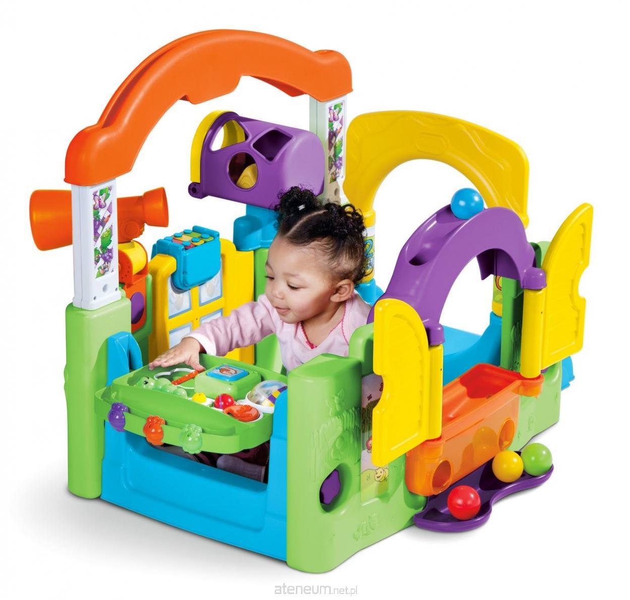 To wyjątkowe centrum zabaw wspiera dzieci w niemalże każdej sferze rozwoju psycho - motorycznego. Stymulujące kolory, kształty i tekstury, z jakich wykonano zestaw, zachęcą maluchy do poznawania świata i zamienią każdą chwilę w odkrywanie zjawisk i zależności! Zestaw może być składany w różnych konfiguracjach, w zależności od potrzeb, zapewniając jednocześnie ciągłą atrakcyjność zabawki. Cechy interaktywnego centrum: - w prosty sposób można zamienić zamknięty ogródek zabaw w otwarte centrum - otwory do przerzucania kolorowych piłeczek - wspiera maluszki w rozwoju motorycznym - skrzynka pocztowa z sorterem do nauki kolorów i kształtów - ruchomy teleskop do obserwacji - świetny "małpi gaj" do raczkowania i przechodzenia przez otwory - otwierane okiennice - otwierane drzwiczki z wmontowanym pianinkiem - zdejmowany panel interaktywny (obracająca się piłeczka, bezpieczne lusterko, ruchome, klikające i barwne robaczki, klikająca gąsienica, obracający się motylek z cyframi od 1 do 4, przycisk z ptaszkiem uruchamiający efekty dźwiękowe - 2 ustawienia natężenia dźwięku - możliwość zabawy 3 dzieci