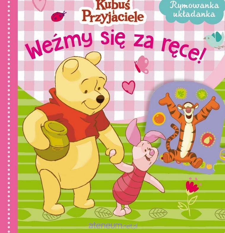 Weźmy się za ręce to przede wszystkim ciepły rymowany wiersz o zabawie i radosnym spędzaniu czasu w gronie przyjaciół, wśród których Kubuś spotyka Kłapouchego, Tygryska, Prosiaczka i Królika. Jego refren Weźmy się za ręce, mili przyjaciele, żeby przeżyć razem chwil cudownych wiele! wprowadzi małego czytelnika w dobry nastrój, którego zadaniem jest dopasowanie puzzla do ilustracji. Uroczo zilustrowany wierszyk z sympatycznymi bohaterami, znanymi z animacji Disneya, zachęci malca do słuchania ze zrozumieniem, a układanie i dopasowywanie puzzli to idealne ćwiczenie dla małych rączek. Dziecko rozwija dzięki niemu sprawność manualną, spostrzegawczość, pamięć wzrokową oraz umiejętność wyodrębnienia elementów o określonym kształcie z tła i układania ich w logiczny ciąg. Ta książka zapewnia maluchowi mądrą zabawę, która angażuje różne zmysły i pomaga doskonalić różne umiejętności.