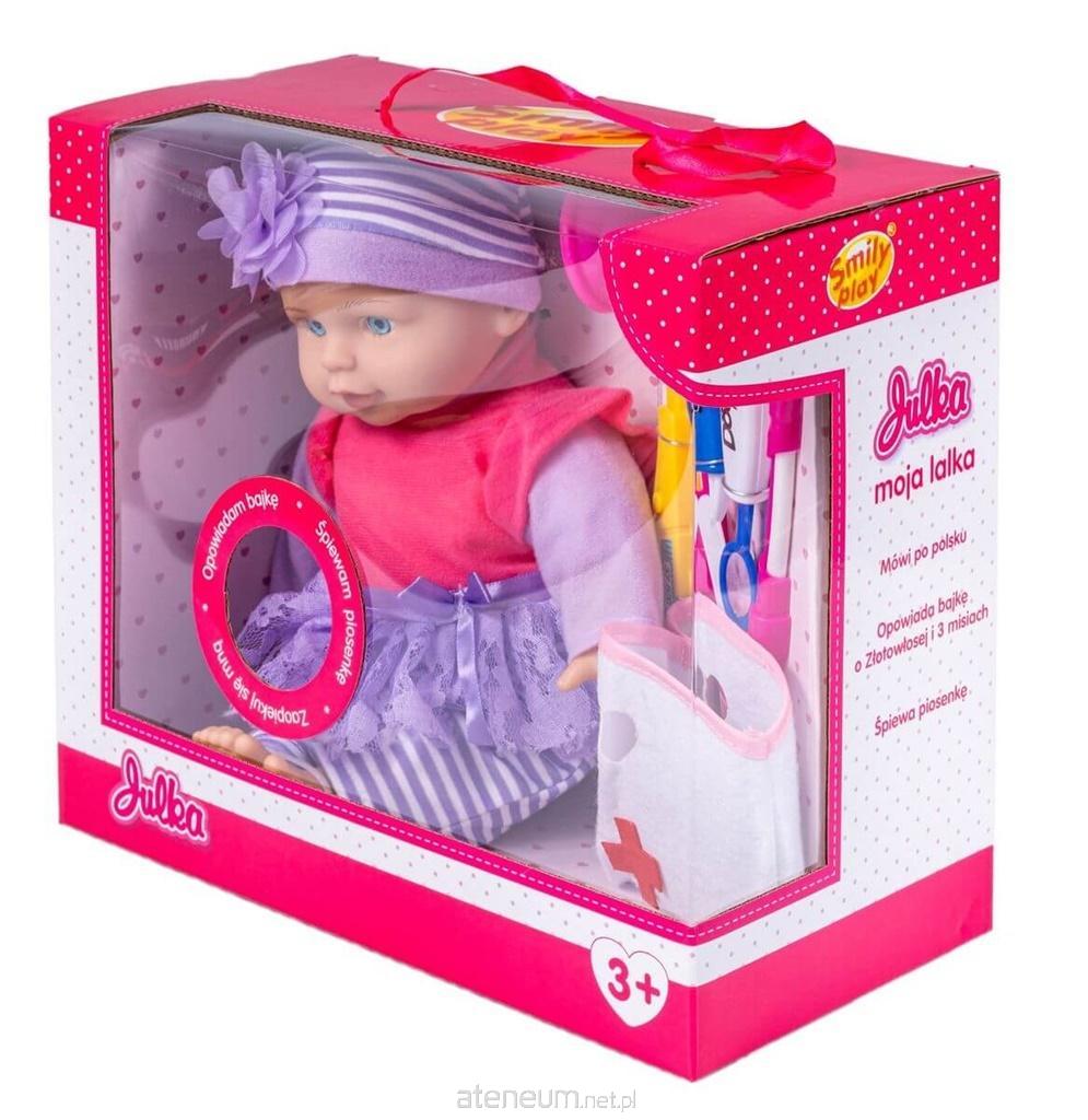 SMILY PLAY JULKA SENSORYCZNA LALKA Z AKCESORIAMI LEKARZ W PUDEŁKU PREZENTOWYM ODGRYWANIE RÓL Lalka Julka lubi, kiedy się nią opiekujesz, badasz i leczysz. Lalka jest ubrana w czapkę i kombinezon z baskinką. Do badania ma odpowiednie akcesoria, które może schować w torbie z uchwytami w kształcie serc. Lalka po naciśnięciu na brzuszek: Mówi po polsku pełnymi zdaniami Śpiewa piosenkę Opowiada bajkę o Złotowłosej i 3 misiach Zabawa w leczenie, to znakomita okazja do nauki zasad zdrowego życia, dbania o siebie innych, a używanie akcesoriów rozwija małą motorykę oraz usprawnia precyzję ruchów. Podczas zabawy zachodzą silne procesy sensoryczne, które są niezbędne do prawidłowego rozwoju. Dziecko, podczas zabawy lalką odbiera w mózgu sygnały, które następnie przetwarza i odpowiada, odpowiednio reagując. Podczas zabawy lalką dziecko rozwija w sobie opiekuńczość i wrażliwość. Noszenie, kołysanie, przytulanie lalki przynosi wiele pozytywnych emocji i pozwala na harmonijny rozwój. Poprzez zabawę pobudza rozwój systemów sensorycznych. Wysokość lalki 35 cm SKŁAD ZESTAWU: Miękka lalka Torebka Stetoskop Bezpieczne lusterko Szpatułka Termometr Specyfikacja: SP83506 Wiek: 36m+ Kod: 5905375835064 Wymiary produktu: szer. 28 cm., wys. 14,5 cm., gł. 24 cm. Baterie: 3 x AG13 dołączone Bezpieczeństwo: EN71-1, EN71-2, ENT1-3, EN62115 Importer: Anek dla Dzieci