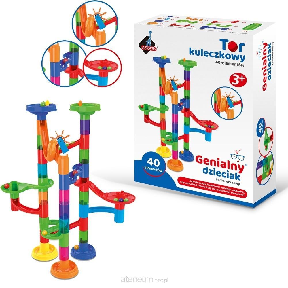 Tor kuleczkowy - 40 elementów27 elem. toru + 13 kolorowych kulek Zestaw, który składa się z kolorowych i niełamliwych części oraz plastikowych kuleczek, dzięki któremu można tworzyć super trasy.Dodatkowo zestaw wyposażony jest w przeźroczyste elementy dzięki którym dziecko widzi kulki przelatujące przez zbudowaną konstrukcję. Puszczanie w ruch kuleczki i obserwowanie ich ruchu to mnóstwo radości. Dziecko może bawić się samo, z przyjaciółmi lub rodzicami organizując wyścigi.Dzieci mogą odwzorowywać modele narysowane na pudełku lub eksperymentować i budować własne konstrukcje. Zjeżdżalnie, mosty, kolumny, kołowrotki, spirale i kominy mogą być łączone na różne sposoby. Zabawka stymuluje kreatywność, rozumowanie przestrzenne oraz rozwija zdolności manualne.Zabawa z torem to niekończąca się przygoda. Możliwość samodzielnego montażu i dowolność w przestawianiu i konstrukcji elementów sprawi maluchowi ogromną satysfakcję, będzie dumny, że sam zbudował tor i nadał mu kształt. A co więcej, może tworzyć wciąż od nowa urzeczywistniając coraz to inne projekty.wiek 3+wymiary opakowania: 27x10x36 cm
