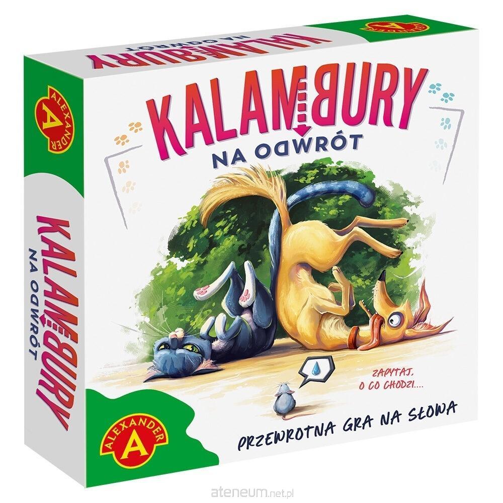 Ta gra niejednokrotnie zmusi cię, żebyś stanął na głowie niczym bohaterowie z okładki. Na szczęście nie będziecie musieli wykazać się niezwykłą sprawnością fizyczną. Jednak to nie oznacza, że będzie łatwo! Gracze w "Kalamburach na odwrót" staną przed nie lada wyzwaniem odgadnięcia właściwego hasła przedstawianego za pomocą słów, a nie jak dotąd - gestykulacji i mimiki. Aby zdobyć jak najwięcej punktów uczestnicy muszą rozszyfrować zagadkę i stworzyć pytanie, w którym zawarte będzie właściwe hasło. Urozmaiceniem zabawy są 2 rodzaje kart. Dzięki nim gracze mogą łatwo zaimplementować do zabawy własne propozycje kalambur.