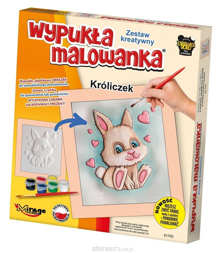 Wypukła Malowanka od Mirage Hobby to Zestaw Kreatywny do malowania dla osób powyżej 5. roku życia. Zestaw zawiera wypukły, plastikowy, kształtny obrazek 3D, farbki akrylowe, pędzelek oraz ramkę z kartonu do postawienia lub powieszenia. Zmyj obrazek przy użyciu ciepłej wody, mydła i szczoteczki, najpóźniej do 15 min. po pomalowaniu. Obrazek ma odpowiedni do wzoru wypukły kształt 3D, który jest dobrze odczuwalny w dotyku. Produkt jest wymyślony i wyprodukowany w Polsce! Wszelkie prawa zastrzeżone. Każda Wypukła Malowanka to konkretny wzór z danej serii. Kolekcja jest podzielona na różne serie np. Koty, Psy, Konie, Futrzaki, Dinozaury, Jednorożce, Kwiaty, Sport, Bajki, Zoo, Las, Taniec i inne. Seria Wypukła Malowanka Zestaw Kreatywny została nagrodzona Wyróżnieniem Zabawka Roku 2018.