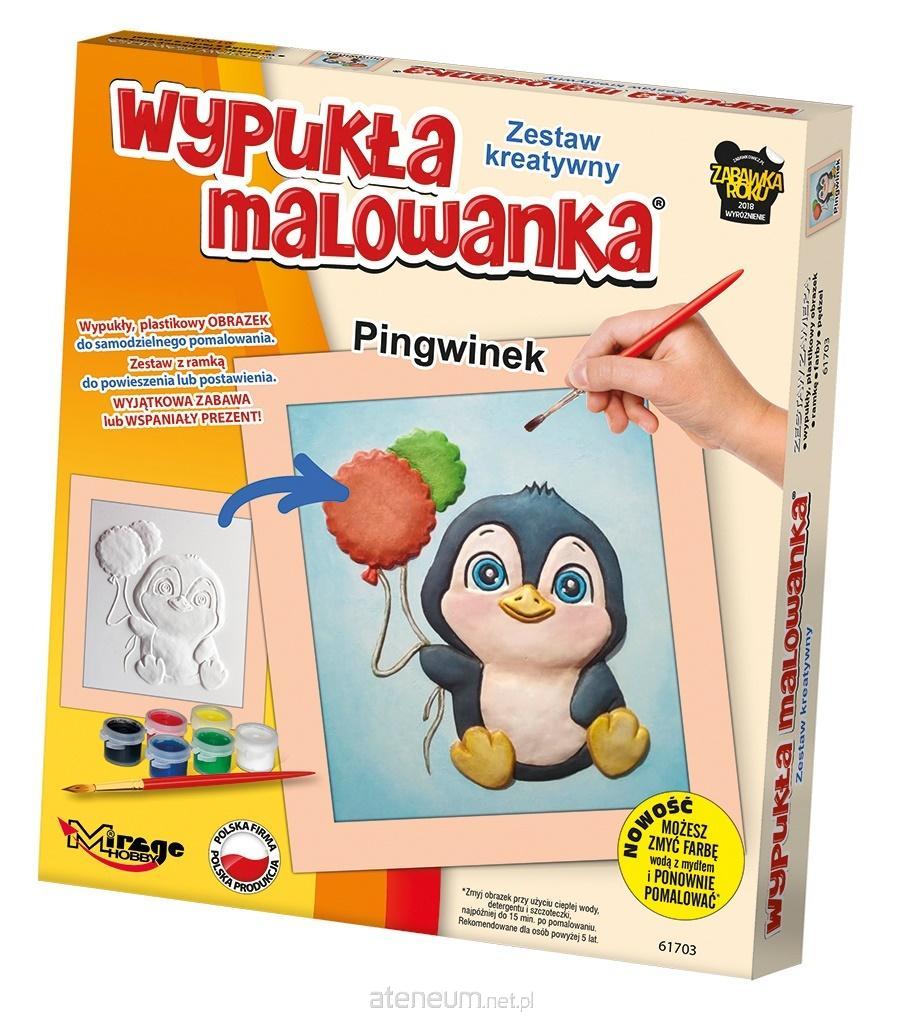 Wypukła Malowanka od Mirage Hobby to Zestaw Kreatywny do malowania dla osób powyżej 5. roku życia. Zestaw zawiera wypukły, plastikowy, kształtny obrazek 3D, farbki akrylowe, pędzelek oraz ramkę z kartonu do postawienia lub powieszenia. Zmyj obrazek przy użyciu ciepłej wody, mydła i szczoteczki, najpóźniej do 15 min. po pomalowaniu. Obrazek ma odpowiedni do wzoru wypukły kształt 3D, który jest dobrze odczuwalny w dotyku. Produkt jest wymyślony i wyprodukowany w Polsce! Wszelkie prawa zastrzeżone. Każda Wypukła Malowanka to konkretny wzór z danej serii. Kolekcja jest podzielona na różne serie np. Koty, Psy, Konie, Futrzaki, Dinozaury, Jednorożce, Kwiaty, Sport, Bajki, Zoo, Las, Taniec i inne. Seria Wypukła Malowanka Zestaw Kreatywny została nagrodzona Wyróżnieniem Zabawka Roku 2018.